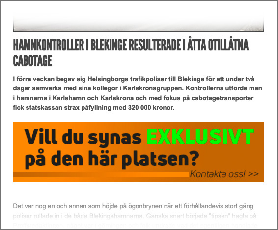 Nu kan du få en riktigt exklusiv placering på din banner på webben, inne i våra nyhetsartiklar, direkt under ingressen. Din banner kommer med andra ord garanterat att synas för alla som läser artiklarna.