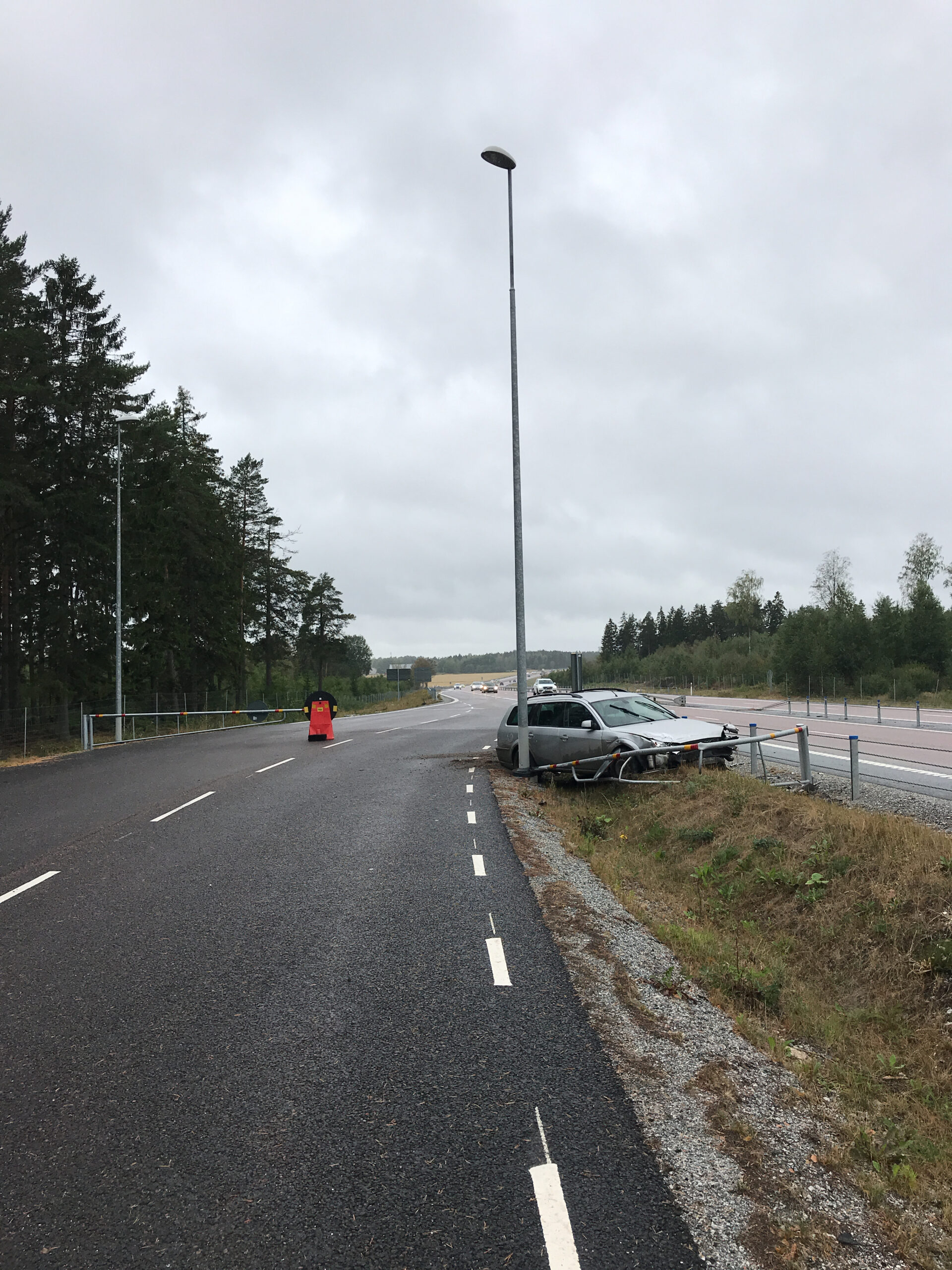 – Då lyckas en svensk personbilsförare missa att se bommarna med tillhörande skyltning gällande infartsförbud till kontrollplatsen, säger Ogemar. Han brakar rätt in i bommen som lossnar från sitt fäste och slår in i en belysningsstolpe som knäcks.