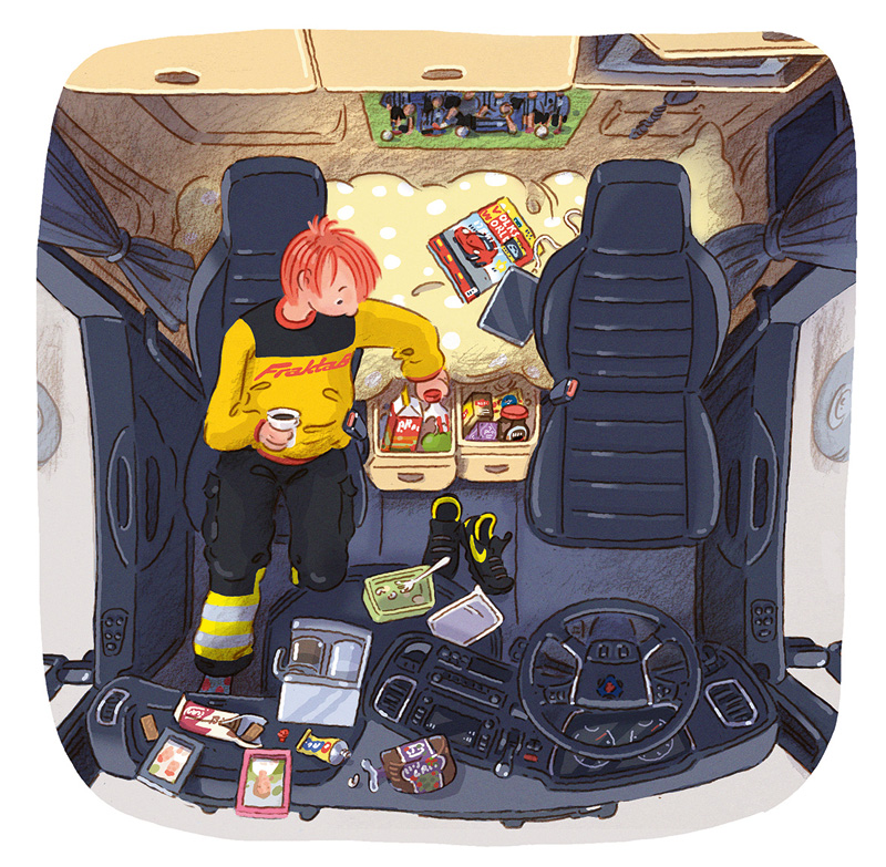 – De har lagt ner en hel del tid på efterforskning, de har besökt oss, träffat åkerier och trafikskolor. I boken beskriver man på ett bra och verklighetstroget sätt hur lastbilen fungerar och hur det är att arbeta som förare. Både tekniken och bekvämligheten i den nya generationen är ju fantastiskt bra, säger han.