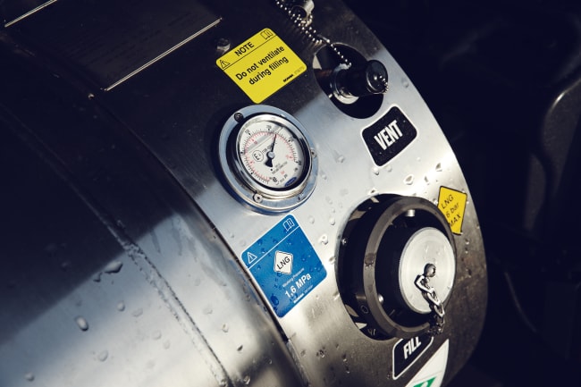I övrigt är lastbilen precis som de traditionella fordonen med 410 hk beträffande prestation, lastförmåga och köregenskaper. Räckvidden vid körning på flytande gas är cirka 110 mil per tankning