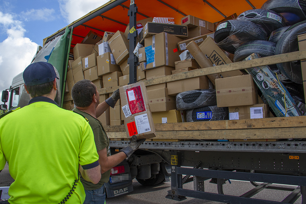Farligt gods med tydliga riktningspilar ligger på fel håll. Platta kartonger, stora och små lådor, däck. Allt i en salig röra. I sin iver att rätta till lasten, kliver föraren runt uppe på godset. Vi funderar på hur kombinationen datorskärmar och glas plus 100 kilo chaufför stämmer överens med postföretagets marknadsföring – foto på ett postpaket med texten ”Detta är Sveriges viktigaste paket”. Å andra sidan skulle ju godset som sagt till Finland…