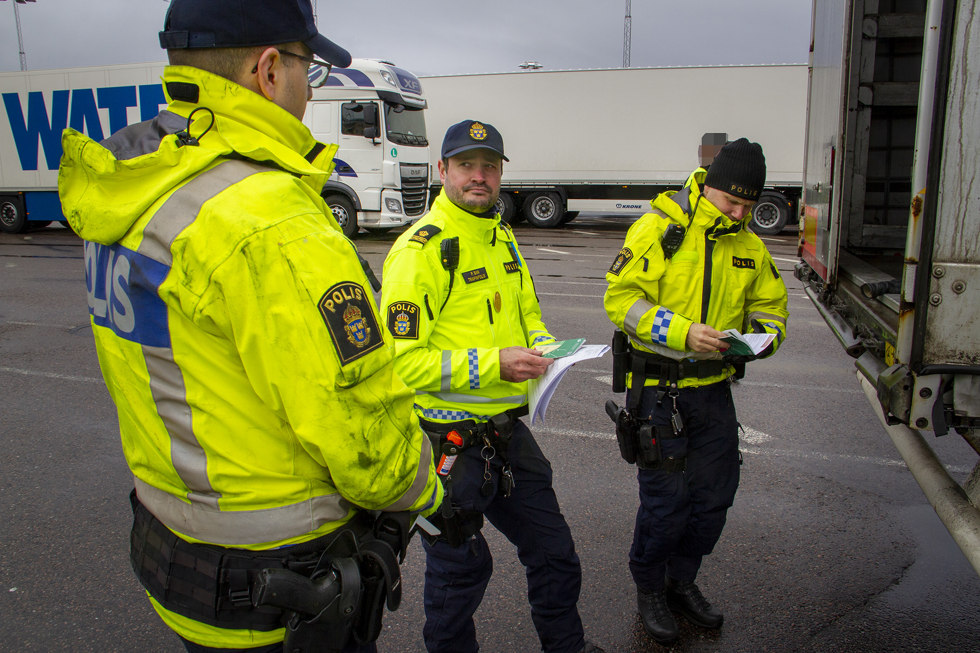 Trafikpolisens främsta uppgift är att kontrollera transporter på väg. Kustbevakningen har ansvaret för säkerheten på sjön. Att polisen nu jobbade med fordon på väg ut ur landet resulterade den här gången i att flertalet fordon fick rätta till lastsäkringen innan de kunde rulla ombord på färjan mot Danmark.