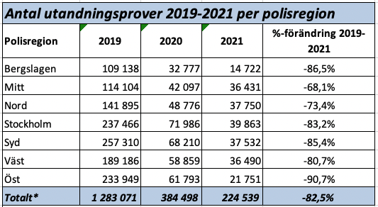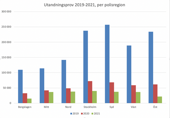 Under 2021 gjorde polisen i Sverige 224 500 nykterhetskontroller, det visar polisens preliminära statistik. Det är en minskning från de redan låga siffrorna 2020, då utandningsproven fastställdes till drygt 385 000 stycken (312 800 preliminärt).