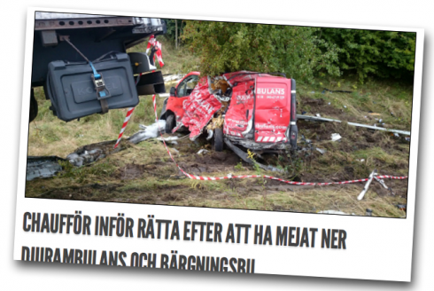 Djurambulansens förare råkade allra värst ut. Hon skadas mycket allvarligt och kan idag varken tala, äta eller svälja. Idag, tisdag, ställs den 24-årige chauffören från Nederländerna inför rätta.